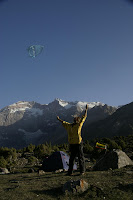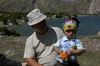 22:40 Tęsiu šiandienos įvykius. O kas Įvyko? Grįžo Laurynas iš outlagerio. Vienas. Aušra darysis paso dublikatą Uzbekijoje ir nežinoma, kaip ir per kur važiuos namo. Bet jau ne su mumis. O mums „dniovkė“ tęsiasi. Fanų ežeruose išsimaudau du su puse kartų (puse, nes įlindau ryte ir išlindau – per šalta buvo). Maisto ryyyyyškiai mums penkiems per daug. Man, kaip maistininkei, šio žygio uždavinys – dar padalinti išėjusiųjų maistą, nuspręsti, ką palikti ar padalyti porcijas į mažesnes. O aš nežinau ką daryti. Porcijas dalyti pusiau lyg ir per mažą būtų, visas davinys – per daug, o nešti tai sunku... Taip ir nežinau. Na, bent jau šiek tiek maisto reikės atiduoti vietiniams. Vakare pasveikinam Vitą su 22-uoju gimtadieniu. Tostai sakomi keliant bambalį su gaiva. Gimtadienio tortas – guminukai. Pabandom pažaisti šaradas. Bet nemėgstu aš to žaidimo. Beje, palapinėje jau miegame trise: Vita, išėjus Irmantui ir Jolitai, atsikraustė pas mus ir miega dabar palapinės viduryje. O Dainius su Donatu prarado savo radiatorių – Aušrelę.